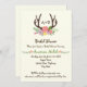Antlers and coral pink wild flowers woodland monogram wedding bridal shower invitation featuring a pair of brown deer antlers and a bouquet of wild forest flowers in coral, pink, yellow with green foliage and leaves and your initials on ivory. This modern floral, whimsical yet elegant and stylish monogrammed wedding template design is fully customisable and is part of a wedding set perfect for a spring, summer or fall woodland wedding.