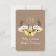 A wedding save the date featuring an illustration of a pair of deer antlers decorated with banner, daisies, and black eyed susans. Background is brown paper cardboard inspired. Personalise the text.