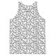 This tank is silky feeling and comfortable. The ants are a little bigger than I thought they would be but the design is very eye catching. People always ask where I got this. The sizing is unisex so it does run a little on the large size. I love this tank! The printing is crisp and clear. The color is uniform throughout.