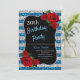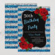 Elegant blue, silver glitter and red roses birthday party invitation for women of any age. The age can be changed for any age. Text can be changed to anything to fit your event. Fonts, font colour and text are completely customisable! Paper shape and type can be customised to fit your budget and taste!