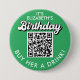 This Any Age Birthday Buy Me A Drink QR Code Button is great for any birthday. Easily change the birthday year for a perfect birthday button. Simply Upload your QR code to create the perfect button to celebrate a night of partying.
