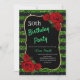 Any Age Birthday Green And Black Glitter Red Roses Invitation