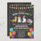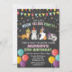Cat Kitten Birthday Chalkboard Chalk Glitter Confetti Stars Birthday Hat Balloons Bunting First 1st Birthday Invitation