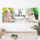 Girl birthday party banner with a photo collage and editable for any age. Personalised with the script text "happy birthday" and space at the bottom to add a message. To change the photo placement: click on the button to customise it further, click on "crop", and move the image.
