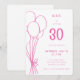 Any Age Hand Drawn Birthday Balloon Hot Pink Invitation