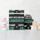 Any Age Happy Birthday Retro Custom Green Black Wrapping Paper