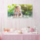 Kids birthday party banner for any age. Personalised with a photo, the script text "happy birthday", the age, the girl or boy's name, and space at the bottom to add a message. To change the photo placement: click on the button to customise it further, click on "crop", and move the image.