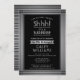Can you keep a secret? Invite family and friends to an elegant and exciting surprise birthday celebration with custom black and silver party invitations. All wording on this template is simple to personalise, including message that reads "Shhh! It's a SURPRISE." The design features a modern striped border on a faux brushed stainless steel background, classic vintage art deco typography and stylish script calligraphy. Please note that silver is printed grey colour, not metallic foil. This card can be customised for any year or event type, and is suitable for either a man or a woman. Cheers and Happy Birthday!