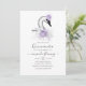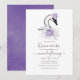 Elegant swan themed quinceanera invitations in accents of purple and silver.