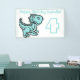 Any Age White and Teal T Rex Dinosaur Birthday Banner