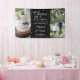 Celebrate the anniversary couple with an elegant custom 2 photo black and white banner. The pictures and wording on this template, including "Cheers to 25 Years," is simple to customise for any year anniversary. (IMAGE PLACEMENT TIP: An easy way to centre a photo exactly how you want is to crop it before uploading to the Zazzle website.) The design features two photos of your choice, classic vintage typography, stylish modern script calligraphy, and silver faux foil confetti dots. Please note that silver is printed colour, not metallic foil. This party sign backdrop is a stylish way to share wedding or family pictures while adding a personalised finishing touch to a special milestone celebration. Congratulations and Happy Anniversary! Example pictures are by the following people on Unsplash: Photos by Lanty (cake) & Tim Stagge (wedding couple).
