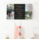 Celebrate the anniversary couple with an elegant custom 4 photo black and gold banner. The pictures and wording on this template, including "Cheers to 50 Years," is simple to customise for any year anniversary. (IMAGE PLACEMENT TIP: An easy way to centre a photo exactly how you want is to crop it before uploading to the Zazzle website.) The design features four photos of your choice, classic vintage typography, stylish modern script calligraphy, and gold faux foil confetti dots. Please note that gold is printed colour, not metallic foil. This party sign backdrop is a stylish way to share wedding or family pictures while adding a personalised finishing touch to a special milestone celebration. Congratulations and Happy Anniversary! Example pictures are by the following people on Unsplash: John-Mark Smith (family in woods), Photos by Lanty (bride & groom hands), Tom the Photographer (cake), & Tim Stagge (wedding couple).