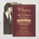 Invite family and friends to an elegant anniversary celebration with custom burgundy and gold party invitations. All wording on this template (including "Cheers to 40 Years") is set up for a ruby 40th wedding anniversary, but is simple to personalise for any year or event type. The design features a simple modern border on a dark red ombre background, stylish script calligraphy, and classic vintage art deco typography. Please note that gold is printed colour, not metallic foil. Happy Anniversary and cheers to the couple on their milestone celebration!