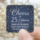 Add a personalised finishing touch to wedding anniversary thank you notes or party favours with these navy blue and grey faux silver square stickers / envelope seals. All text is simple to customise or delete. This template is set up for a 25th anniversary, but can easily be changed to another year or event, such as a birthday. Design features silver faux foil confetti dots on a navy blue background, stylish script calligraphy "Cheers to 25 years," and modern minimalist typography customisable message at bottom. Please note that silver is printed with grey and white colour, not metallic foil.