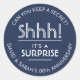 Add an elegant personalised touch to surprise 25th silver anniversary party invitations, decorations, and favours with these modern navy blue and light grey stickers / envelope seals. Design features a trendy vintage art deco inspired typography with customisable message that reads "Shhh! It's a SURPRISE." As an option, the stylish curved typography can be a name and address for use as chic modern round return address labels.