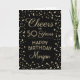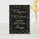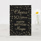 Say happy birthday in style with this elegant black and gold greeting card. Design features customizable script calligraphy "Cheers to 50 Years" and gold faux glitter confetti dots on a black background. Please note that gold is printed color, not metallic foil. The modern typography message is simple to personalize to any age or for another occasion, such as a retirement. For an elegant & unique finishing touch, sign card with a gold pen. This stylish folded card is suitable for either a man or a woman. Happy 50th Birthday!