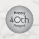 Add a personalised touch to birthday party decorations with custom silver grey and black table confetti. This template is set up for a "Cheers to 40 Years" 40th birthday celebration, but is simple to customise for any number of years. The design features a modern faux foil printed background, elegant script calligraphy and stylish vintage typography. Please note that silver is printed grey ombre colour, not metallic foil. This festive table confetti adds a unique customised touch to a special milestone party for him or her. Cheers and Happy Birthday!