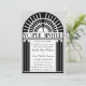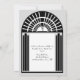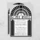 A classic, vintage wedding invitation shown here in bold black and white with grey borders. A stylised Art Deco graphic incorporating a sunburst, frame and tall panels decorate this striking design and a silhouette of a bride and her groom complete the image. Any background colour can be chosen for this design by selecting the "customise it" option and then "Edit", "Background". Art Deco was a popular style in the 1920s, 1930s and 1940s.