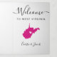 Welcome guests to your wedding with this tri-fold card. There is plenty of room to include your itinerary, restaurant suggestions, things to do, and contact info. There is space for a photo on the back of the card. All text may be customised, including the heading. You may edit the colours for any part of this design, as well as move the heart to the location of your wedding. To change colours, click personalise and then "edit using the design tool." Select the element you wish to edit, then use the tools to make the changes.