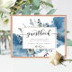 Elegant guestbook sign with the ability to change text to suit any event. Exquisite hand painted watercolor floral with delicate blue watercolor stain behind. Flowers and foliage in dusty blue, navy blue, white, gray and sage green tones. Use of hand written modern Calligraphy details and block typography. Coordinating guestbook available. Part of our "Rustic Blue Mountains" wedding and events collection.