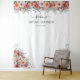 Elegant Floral Photo backdrop tapestry. Ability to add any event. Hand written Script typography details. Ideal for weddings, bridal and baby showers, brunch, birthdays and anniversaries. Gorgeous hand painted watercolor floral border on top and corner bouquets on the bottom. Flowers and foliage in a mixture of blush pink, dusty rose, peach, ivory, slate cloudy dusty blue , grey and sage green tones. Coordinating invitations and variety of event products available. Part of our "Ethereal" wedding and events collections.