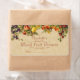 An illustration of a mixture of fruits - plums, cherries, lemons, apples, peaches, on a beige background with russet coloured text, made from vintage paintings. The label is set up for canning or bottling home made fruit jams, jellies and preserves. You can leave the date space to write in, or change to the date your jam or jelly was made.