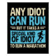 Funny marathon runner design for men or women who run marathons. Design says, "Any idiot can run but it takes a special idiot to run a marathon."