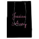 Any Name | Cool Editable Pink Script on Black Medium Gift Bag
