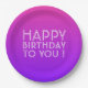 Any Name Editable Happy Birthday Pink Purple Ombre Paper Plate