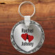 A lovely, fun keychain with a big metal smooth silver 3d look heart on a background of shiny, shimmering silver sequins. Added in the middle of this cool keychain is two red hearts to signify your love together. Nice for your girlfriend, boyfriend, friend, weddings, silver 25th anniversaries, Valentine's Day, birthday parties, etc., or just a unique key chain to keep for yourself. Easily add your custom names or any text.