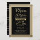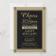 Invite colleagues, coworkers, family and friends to an elegant retirement celebration with custom black and gold party invitations. The "Cheers to 20 Years" template wording is set up to honour twenty years of service, but is simple to customise for any number. The design features a modern striped border, stylish script calligraphy, and classic vintage art deco typography. Please note that gold is printed colour, not metallic foil. Its gender neutral design is also suitable for either a man or a woman. Cheers, Congratulations and Happy Retirement!