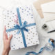 Wrapping paper with a patterned star print, the white background can be changed to any colour. Colours are blue, silver grey and gold taupe.