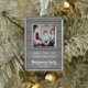 Any Text 2 Photo Modern Grey Wood Family Keepsake Silver Plated Framed Ornament