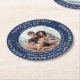 Any Text Wedding Save the Date Photo Navy & White Round Paper Coaster