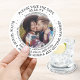 Announce the joyful news of your engagement and upcoming wedding celebration with unique custom photo save the date drink coasters. The picture and all wording on this round invitation template are simple to personalize. The black and white design features one picture of the engaged couple and modern minimalist typewriter style typography in a circle. Family and friends will love having stylish and functional announcement cards they can display in their homes. Simply hand out casually to invited guests or send in mail using A2 size (5-3/4"W x 4-3/8"H.) or square 5-1/2" x 5-1/2" envelopes (sold separately). Small cardboard mailers usually used for cd's and dvd's (or similar) would also work. Congratulations to the bride and groom!
