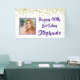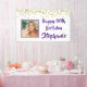 Celebrate any year birthday with this personalised photo banner with wishes for a HAPPY ##TH BIRTHDAY. Modern, chic design with a gold confetti border and an editable purple brush script font which can be changed to a different font style or colour to coordinate with your party theme. PHOTO TIP: For fastest/best results, choose a photo with the subject in the middle and/or pre-crop it to a square shape BEFORE uploading and it will fill in the photo space provided perfectly. Contact the designer if you’d like this design modified, on another product or would like coordinating items to complete your party ensemble.
