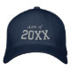 This navy embroidered wool blend baseball cap can be totally customised by you for any graduate! Just change the template text to your own, then click on the CUSTOMIZE IT link to change text and hat colours or styles. If you need help with customisation, just click on the contact link above to send the designer a personal detailed message.