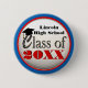 Easily customise these popular round and button pins with the year of graduation~shown is 20XX in red stylish font. Room for the graduate's name or the school name, etc. as well. The text colour and font can also be easily changed. Cool gold graphic design with "Class Of" is on a 3d look white background with a classy blue and red accent border frame all around. Added is a cute little black graduation cap / hat with gold tassel that sits above the letter C in Class. Lots of sizes of these buttons are available. Great for the entire graduating class and guests. Perfect for kids, teens, and men and women graduates of any age! Great for preschool and elementary school, junior middle school, high school seniors, or college seniors and graduate school seniors as well!