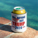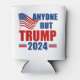Vote for anyone but Trump in the 2024 election to stay patriotic. Republicans and Democrats need to unite against Donald Trump and vote for Joe Biden so we can keep America safe. American flag on a political can cooler with anti Trump message.