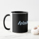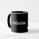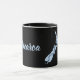Awesome Kiwi mug featuring a graphic map of the country of NZ. On one side is the text reading, "Aotearoa", whilst on the other side is the picture map. This unique map depicts the 3 largest islands of New Zealand, each with the name that they are known as in the Māori language written on them. So, in English Kiwis call the three main islands the North Island, the South Island, and Stewart Island. However whe speaking in Te Reo Māori (the Māori language) they are Te Ika-a-Māui (fish of Maui), Te wai pounamu (waters of greenstone), and Rakiura (glowing skies). The backdrop to this map is a black colour.