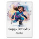** This BIRTHDAY CARD features a delightful illustration of a spirited young girl joyfully playing ice hockey, capturing the excitement, energy, and charm of youth sports.