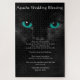 This beautiful apache wedding blessing, which starts with "now you shall feel no rain. with a black cat with turquoise eyes looking at you white text and black background.