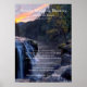 This beautiful apache wedding blessing, which starts with "now you shall feel no rain. with a beautiful forest rivers flowing down stream you can see a small waterfalls and the river behind it with the forest tree line going away from you and a orange line in the sky from the sun setting.