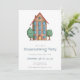 Cute invitation for a housewarming party with an illustration of an apartment building and a couple of trees. Personalise the invitation with your information. Illustrated and designed by Patricia Alvarez.