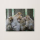 Adorable photograph of a family of apes hugging for warmth or comfort.