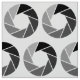 A pattern made up of camera lens aperture symbols. The design can can be further customised and motifs can be arranged in a variety of different ways.