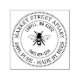 Strong Font - good for stamping kraft paper and cotton or unbleached muslin bags for apiary supplies & sales. Also great for stamping wooden crates. Try sage green or brown - or unexpected colours like royal blue or metallic gold. You can use embossing "pens" (markers) instead of an ink pad to paint on the stamp before applying it to your paper or fabric/wood, etc. To create raised text and image in less than a minute: while the ink or paint is still wet just sprinkle some embossing powder on it and use a heat gun or hairdryer to dry it...powder will "rubberise" and puff slightly. (gold and black look fantastic.) Excellent way to make your own labels, especially on kraft paper or gold ink on black sticker since font is extra-bold. Apiary or Beekeeper Name in a curve along top of stamp, with business location and contact info along inner curve. "100% Pure - Made By Bees".