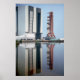 The 363-foot tall Apollo (Spacecraft 112/Lunar Module 10/Saturn 510) space vehicle is leaving the Vehicle Assembly Building (VAB) for Pad A, Launch Complex 39, Kennedy Space Centre (KSC). The Saturn V stack and its mobile launch tower are atop a crawler-transporter. The stack and the VAB are reflected in the body of water in front of the building.