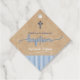 Blue and White seersucker upon a craft paper pattern create a classic and understated design on this diamond favour tag. Part of the "Apostle Collection".