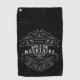 Stylish golf towel for moonshine lovers features fictitious Appalachian Apple Pie moonshine label in white/light grey on black background. Perfect gift for redneck golfers.